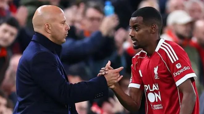 伊薩克9月初以1.25億英鎊的轉(zhuǎn)會費(fèi),從紐卡斯?fàn)柤用死锲?。到目前為止,他各?xiàng)賽事7次出場,只打入1球,而且是在聯(lián)賽杯里。周日在安菲爾德球場,利物浦不敵曼聯(lián),是他連續(xù)第三次首發(fā)卻未能進(jìn)球,他的隊友?;倏嗽趯﹃嚰t魔的比賽里只能出任替補(bǔ)。埃基蒂克為利物浦攻入4球,3球出現(xiàn)在聯(lián)賽賽場。